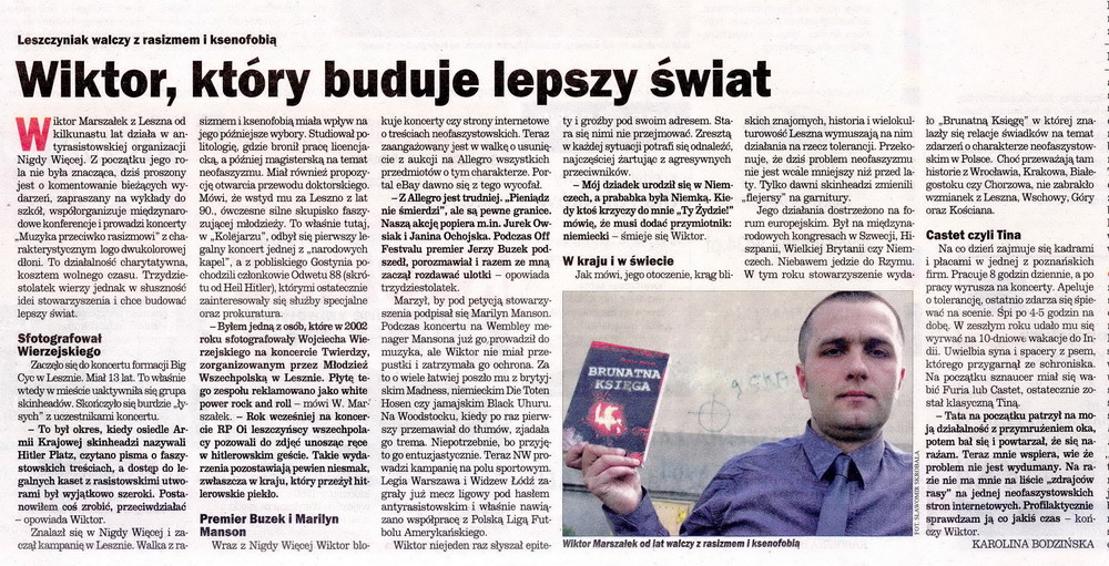 K. Bodzińska: Wiktor, który buduje lepszy świat. „Panorama Leszczyńska”, 1 - 07. 10. 2009.