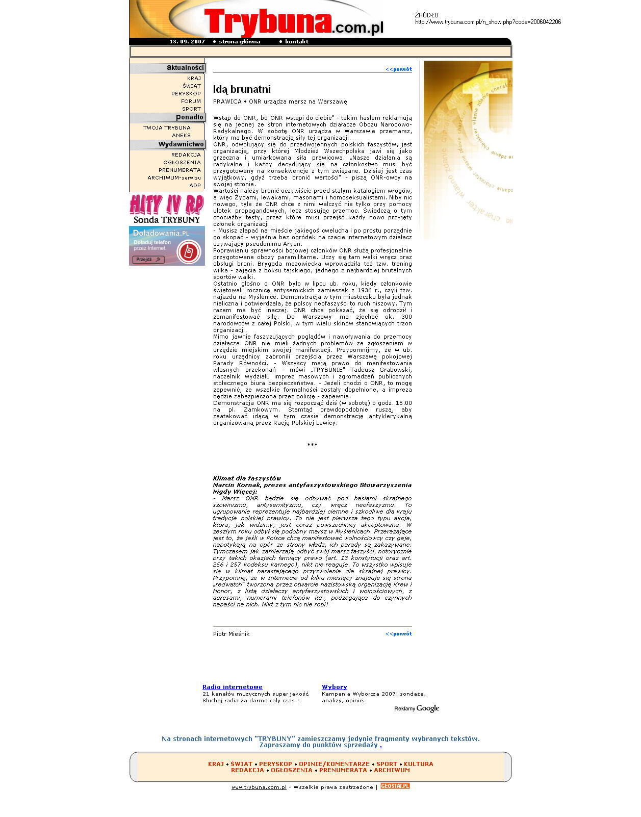 P. Mieśnik: Idą brunatni. „Trybuna”, 22 - 23.04.2006.