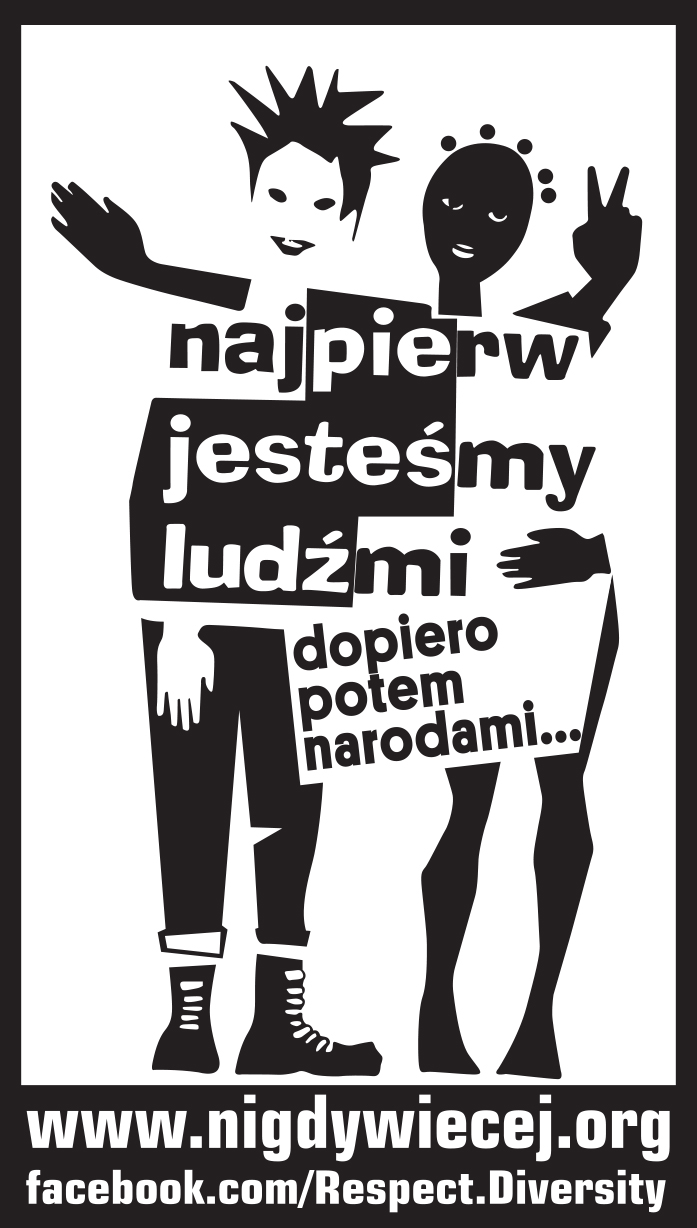 Stowarzyszenie „NIGDY WIĘCEJ” jest założoną w 1996 roku niezależną organizacją ekspercką, która prowadzi działania w dziedzinie pamięci o historii, budowania kultury pokoju i edukacji o prawach człowieka. Stowarzyszenie od wielu lat dokumentuje w „Brunatnej Księdze” zdarzenia ksenofobiczne i akty dyskryminacji. Prowadzi edukacyjne kampanie społeczne, m.in. „Muzyka Przeciwko Rasizmowi” i „Wykopmy Rasizm ze Stadionów”, które promują – przede wszystkim wśród młodego pokolenia – takie wartości jak pokój i szacunek dla odmienności. Przyświeca nam idea społeczeństwa różnorodnego, opartego na równości oraz otwartości. Motto naszych szkoleń i warsztatów to: „Najpierw jesteśmy ludźmi, dopiero potem narodami”.
