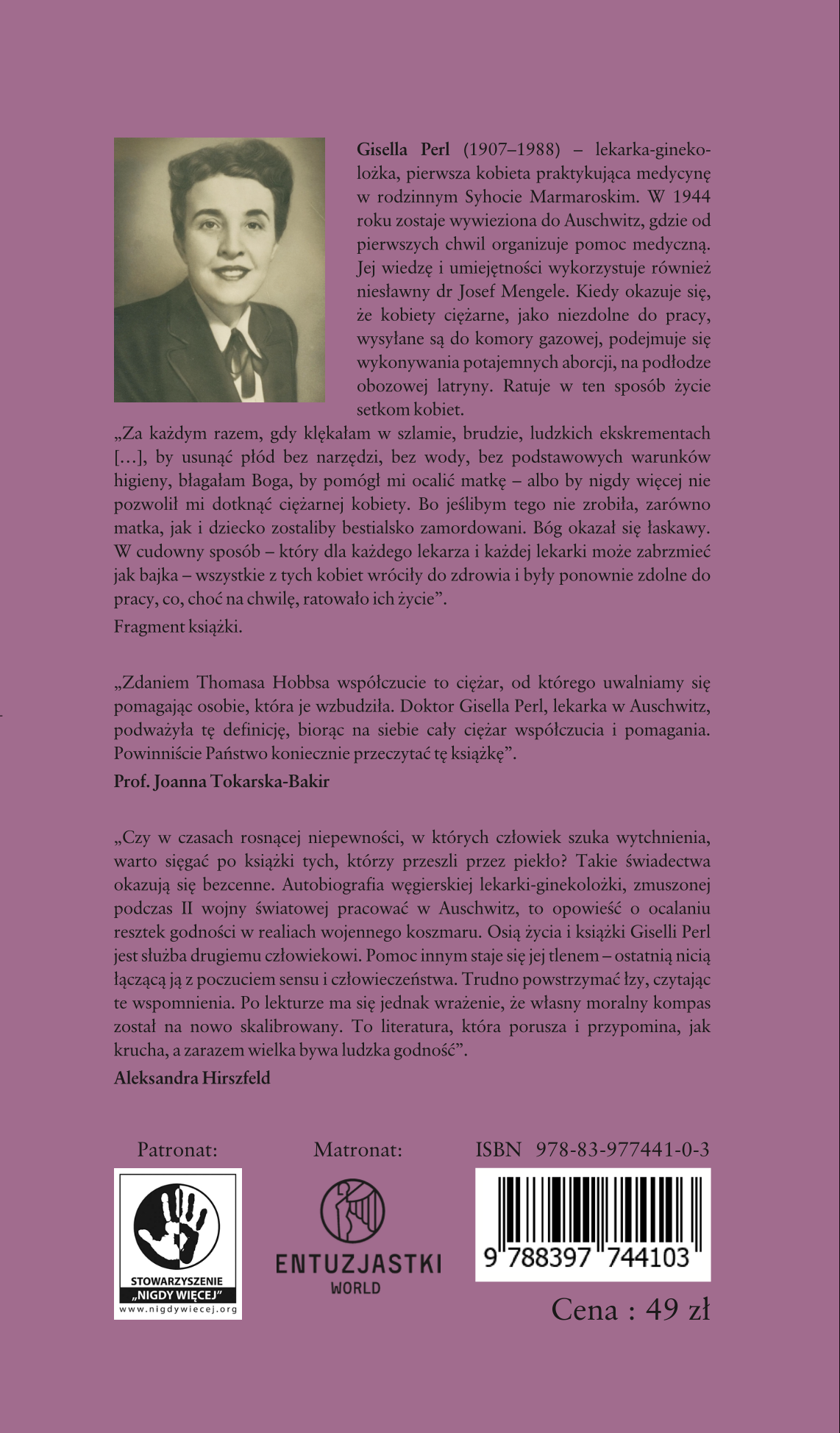 PATRONAT STOWARZYSZENIA „NIGDY WIĘCEJ”: „BYŁAM LEKARKĄ W AUSCHWITZ” GISELLI PERL